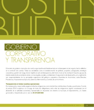 corporativa y gestión del riesgo, tienen implícito el sello de transparencia; del mismo modo en la orientación hacia los grupos de